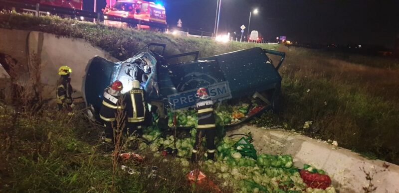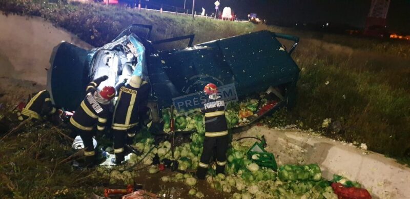Accidentul a avut loc în această dimineață, în jurul orei 5:30, pe varianta de ocoloire a municipiului Satu Mare. Potrivit informațiilor PresaSM, șoferul unei autoutilitare încărcate cu varză a pierdut controlul volanului și s-a răsturnat cu mașina în afara părții carosabile.