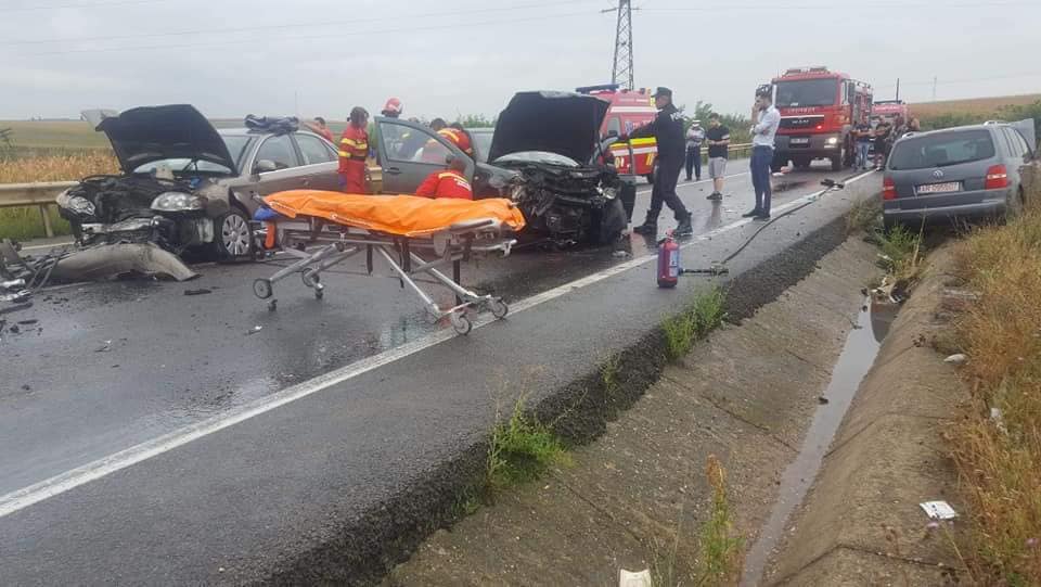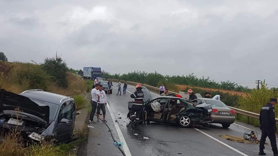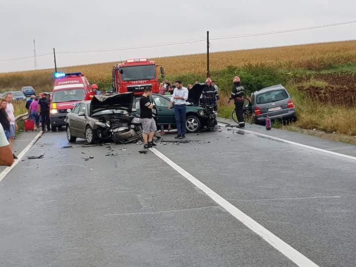 FOTOGALERIE. Accident rutier cu victime. Trei mașini implicate pe DN 19