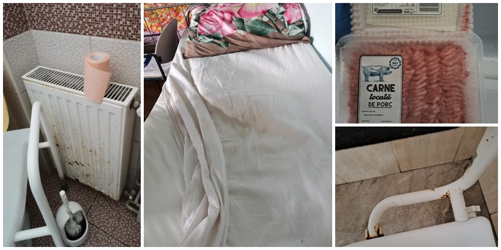 - condiții de lucru improprii, la blocul alimentar, cu pereți cu igrasie, ușă ruginită și geam spart la scara de serviciu