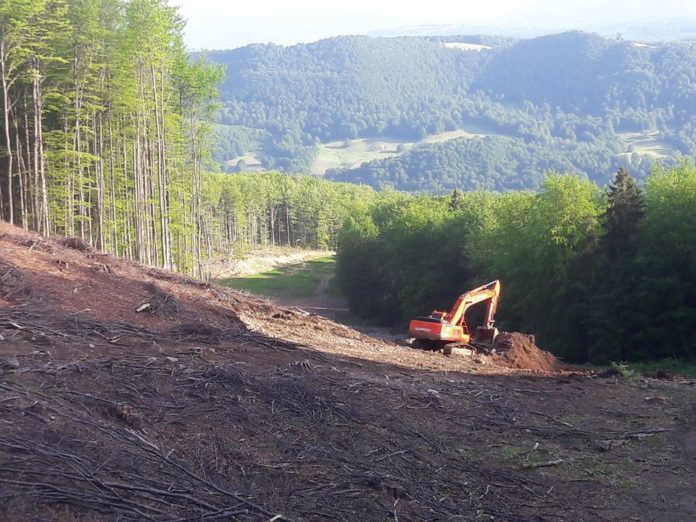Firma ACOMIN, responsabilă de pregătirea domeniului schiabil, și-a reluat activitatea conform proiectului, prin lucrări terasiere, de excavare și nivelare a terenului, în vederea amenajării ultimului tronson din lungimea pârtiei.