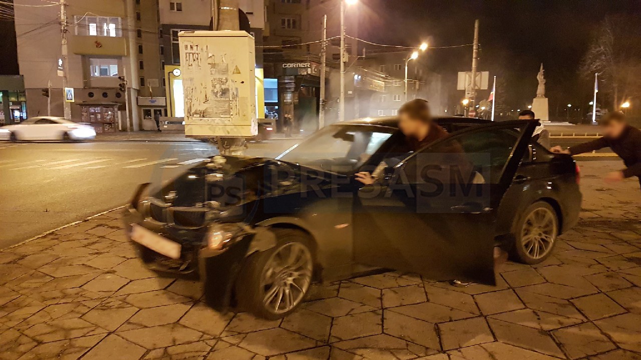 FOTOGALERIE. BMW în stâlp, în centrul Sătmarului, lângă Muzeul Județean!