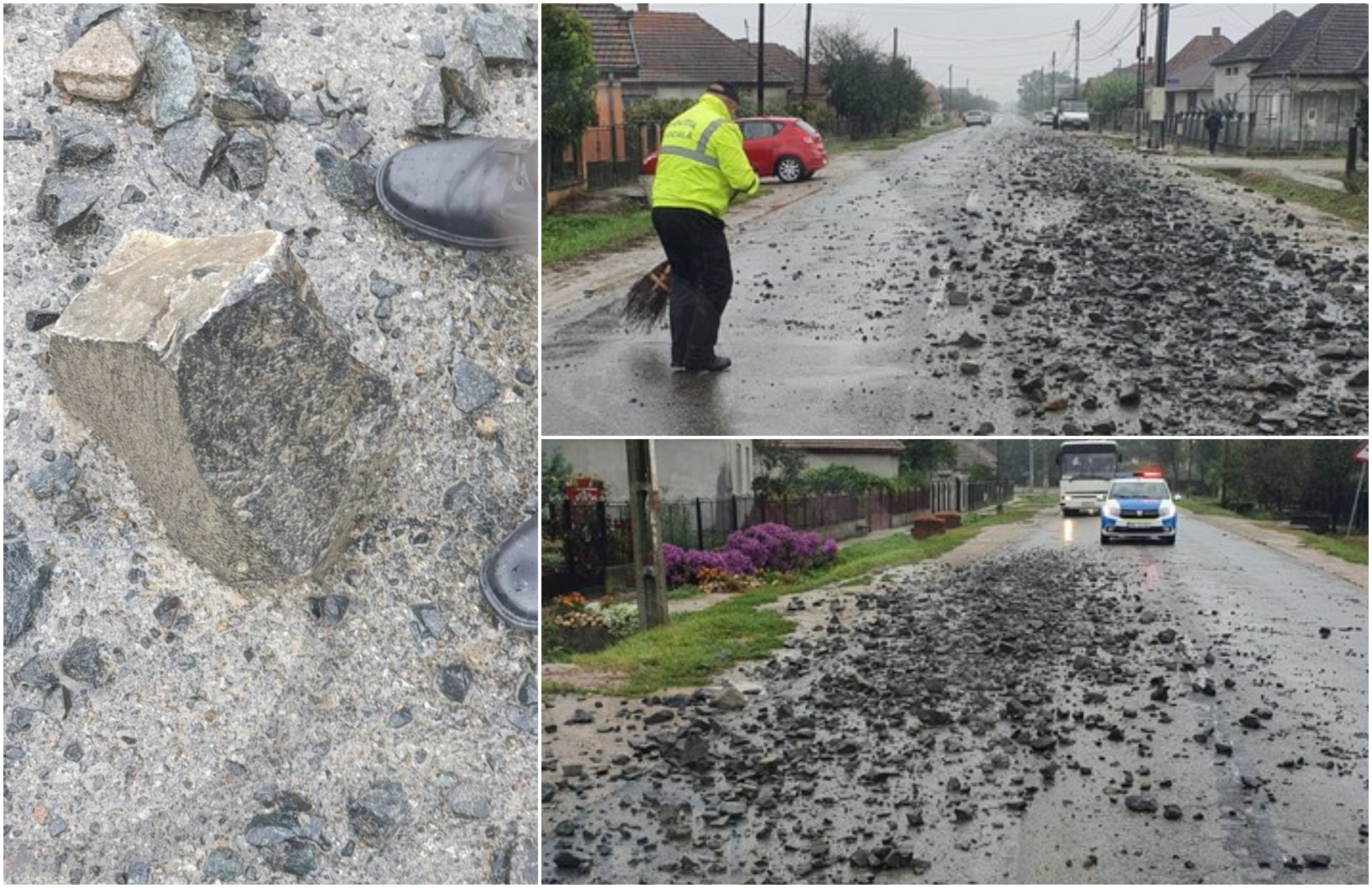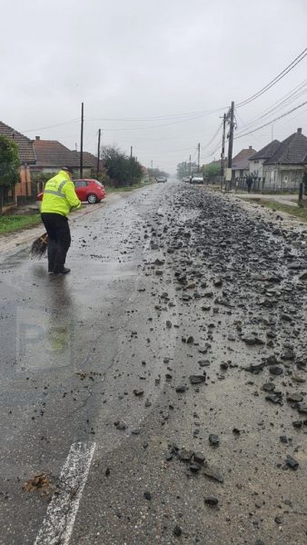 Incident pe Drumul Județean 193, în localitatea Petin înspre Apateu. Potrivit informațiilor PresaSM, totul s-a întâmplat astăzi, în jurul orei 15.20, atunci când din bena unui camion au căzut pietre de dimensiuni mari pe asfalt. Șoferul nu a realizat și și-a continuat drumul, fiind identificat ulterior - cu promptitudine - de către oamenii legii.