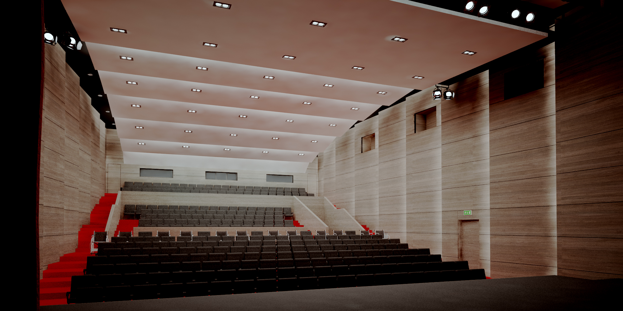 Sala de spectacole / proiecţie cinema, care va avea 305 locuri + 12 locuri pentru persoane cu dezabilități motorii, va fi dotată cu aparatură specializată pentru iluminat de scenă, sisteme de sunet și de proiecție cinema.