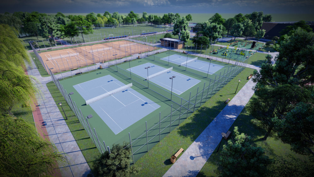 - terenuri de tenis (dintre care 3 cu balon), handbal, volei, basket, mini-fotbal cu suprafețe de zgură, tartan sau gazon sintetic, teqball, inclusiv vestiare, etc;