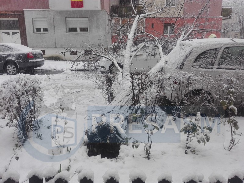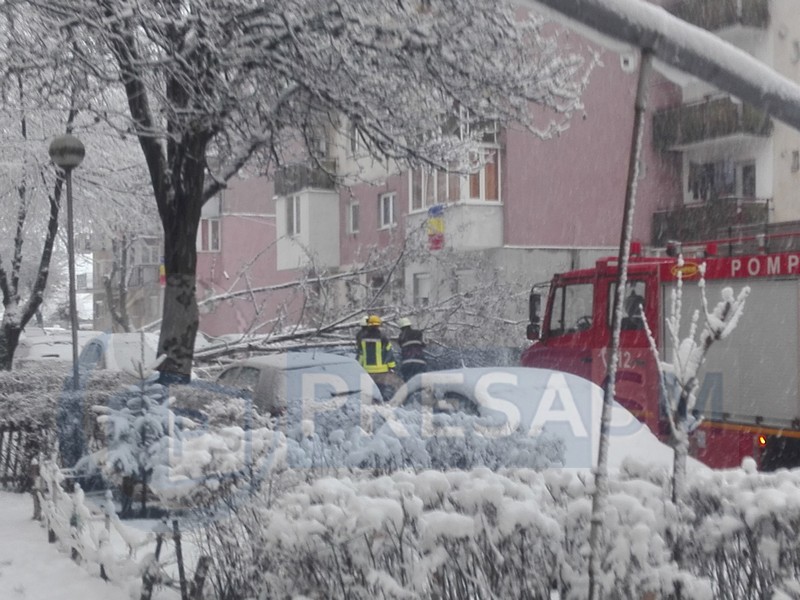 2. Copac căzut pe autoturism în municipiul Satu Mare, în Cartierul Micro 16, pe Aleea Crizantemei