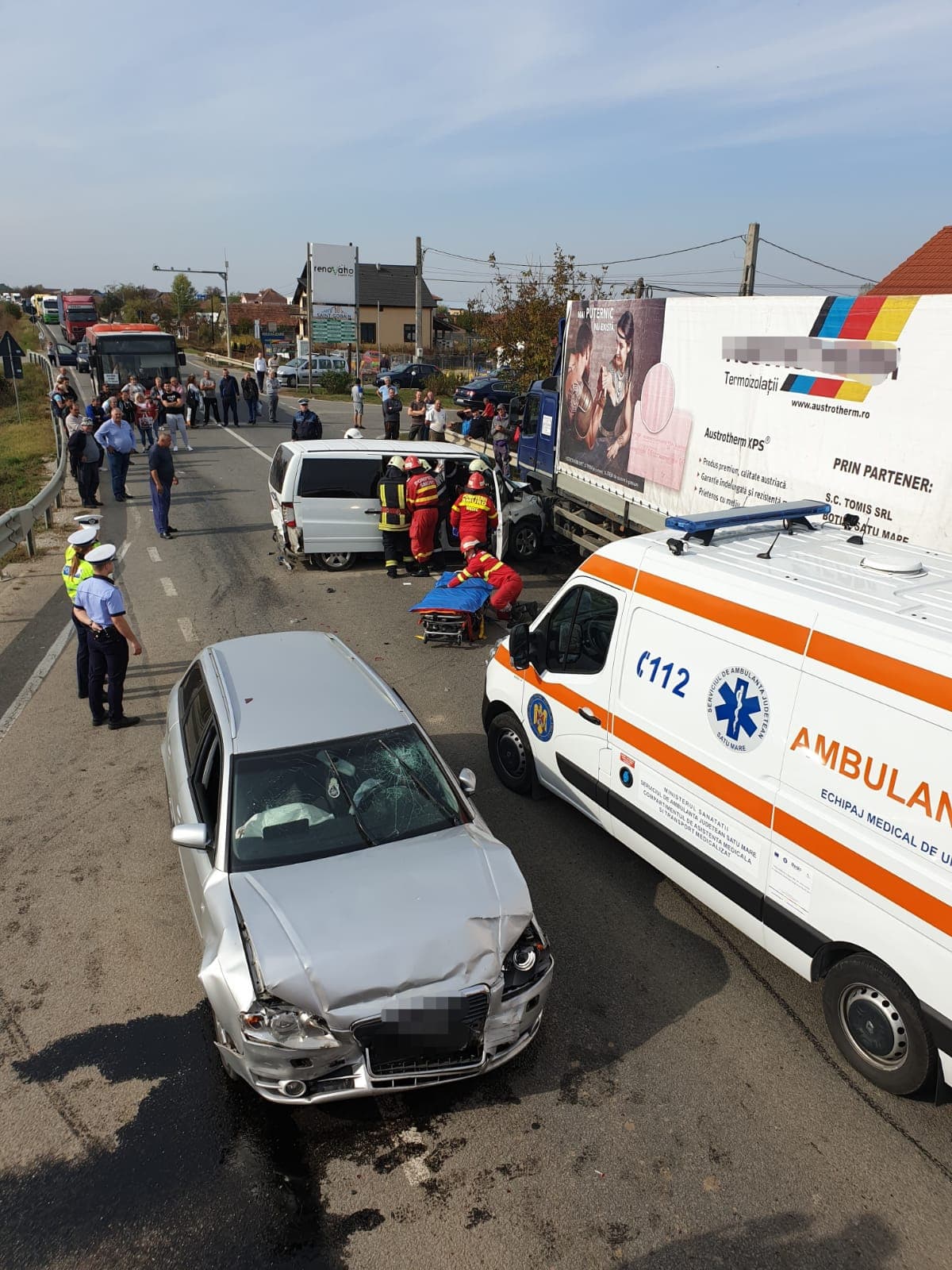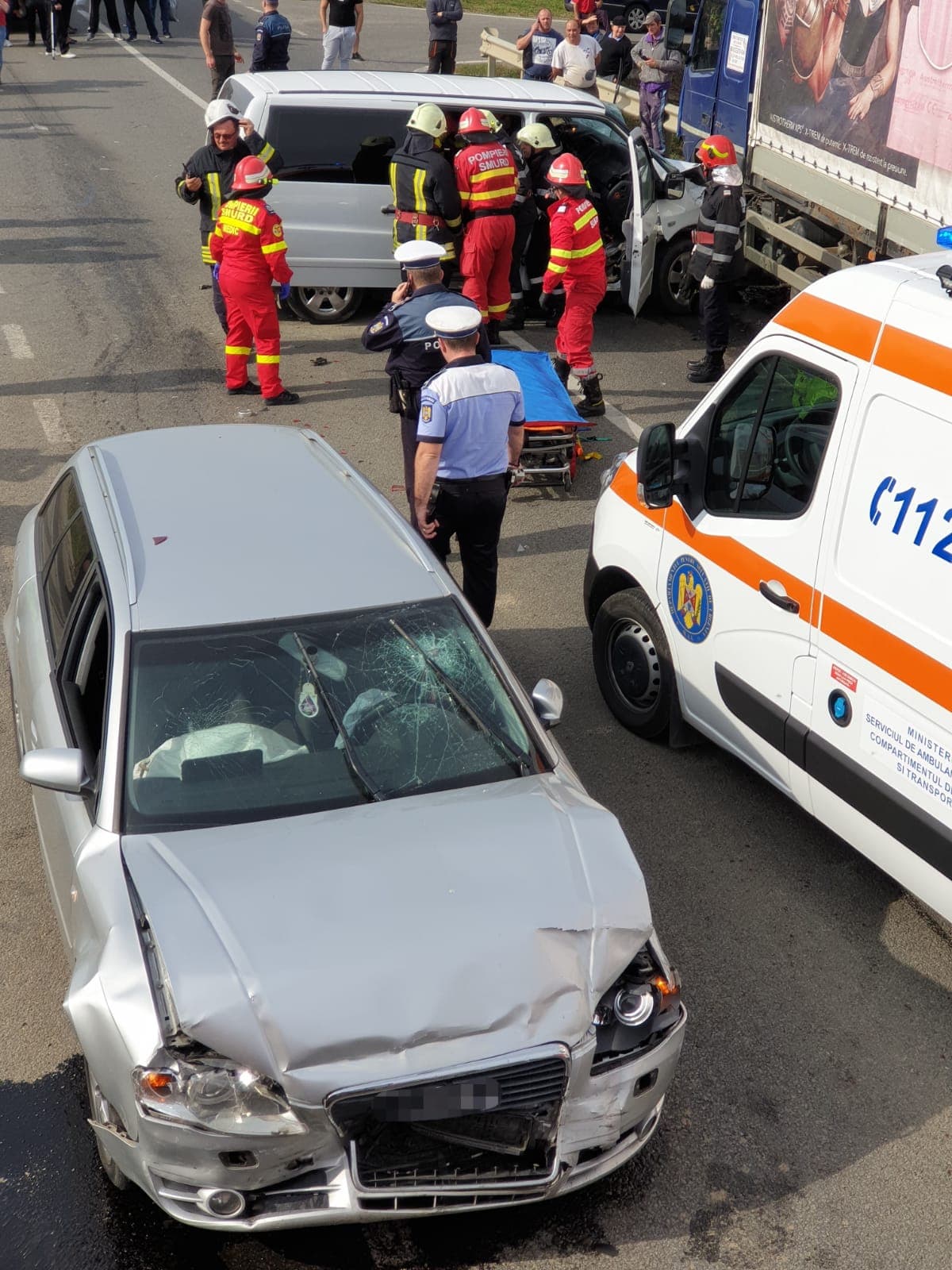 FOTOGALERIE. Culpă în lanț în accidentul dintre un TIR, microbuz și mașină, de pe DN19