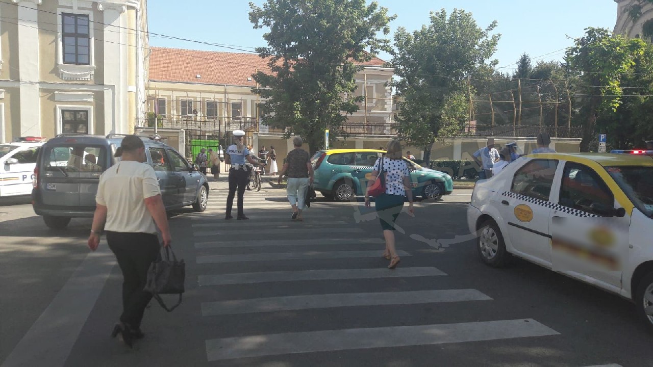 FOTOGALERIE. Femeie acroșată de un taxi pe trecere de pietoni, în centrul Sătmarului