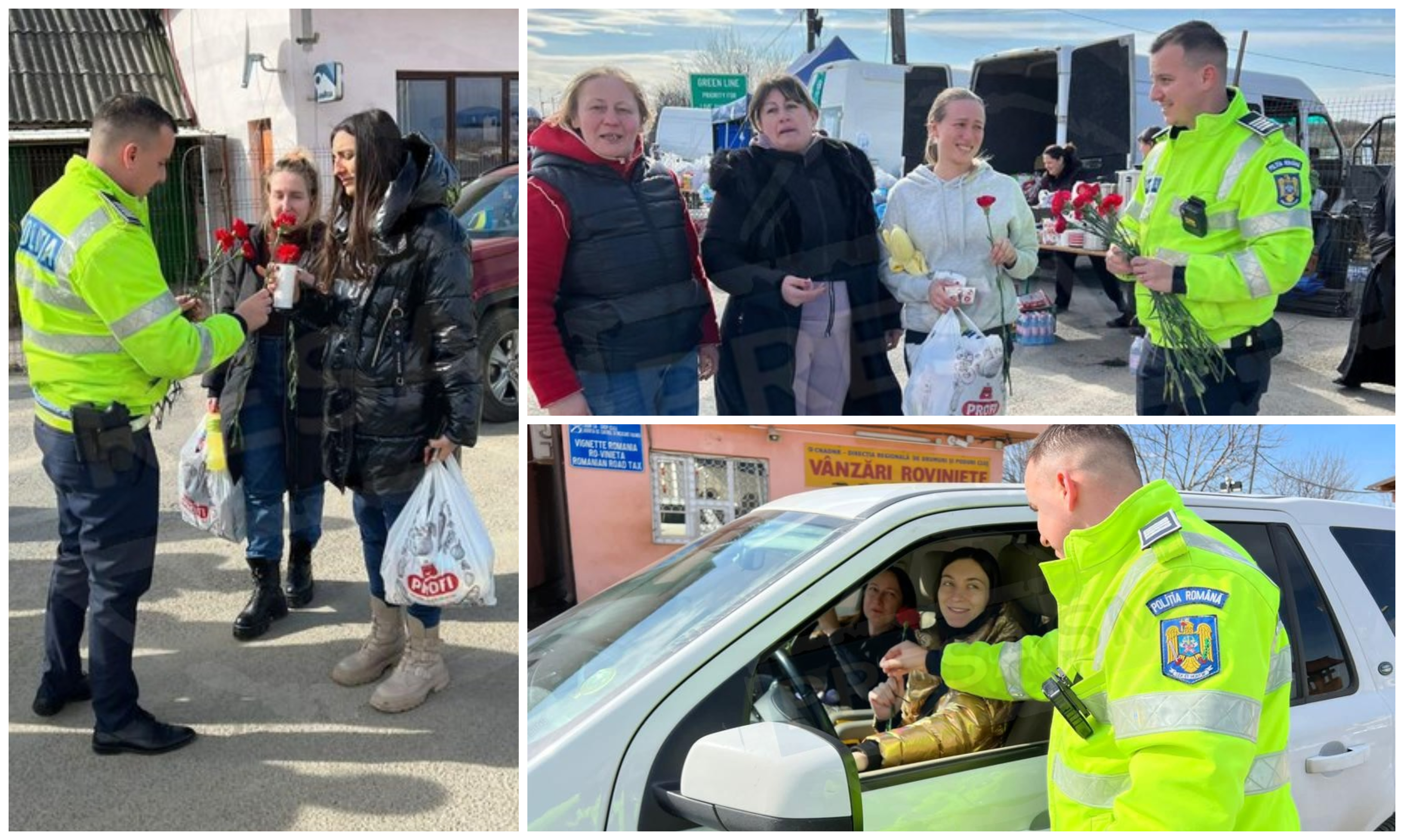 Gest de suflet și plin de simbolism în Punctul de Trecere a Frontierei din Halmeu. Lucrătorii din cadrul Serviciului Poliției Rutiere Satu Mare au adus astăzi zâmbetul pe fața doamnelor și domnișoarelor refugiate din Ucraina.