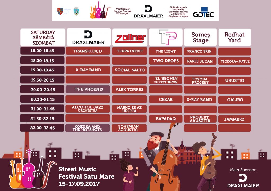 Nu doar muzică de stradă: programul muzical al festivalului va fi completat de performanțe de artă stradală și de street food. Sătmărenii au ocazia de a încerca adevăratele gusturi de stradă, cea pe care până acum au avut ocazia să o descopere doar în alte orașe.