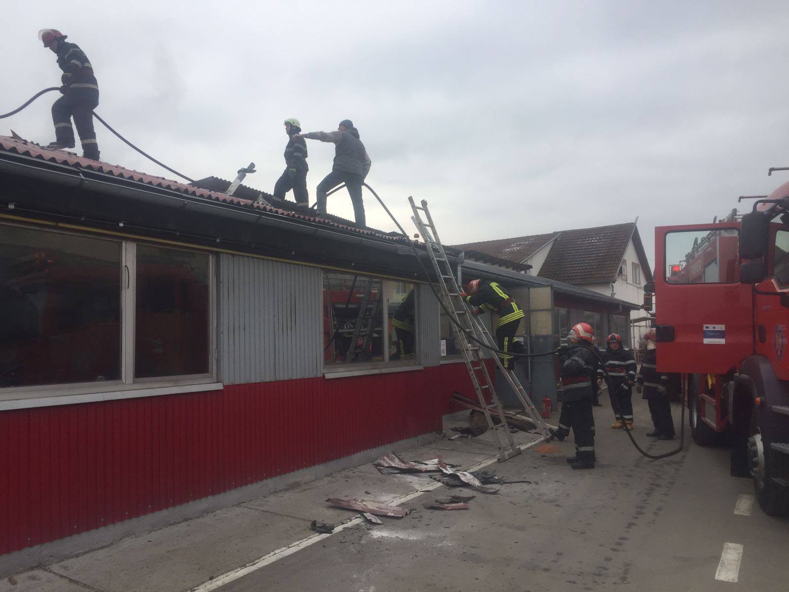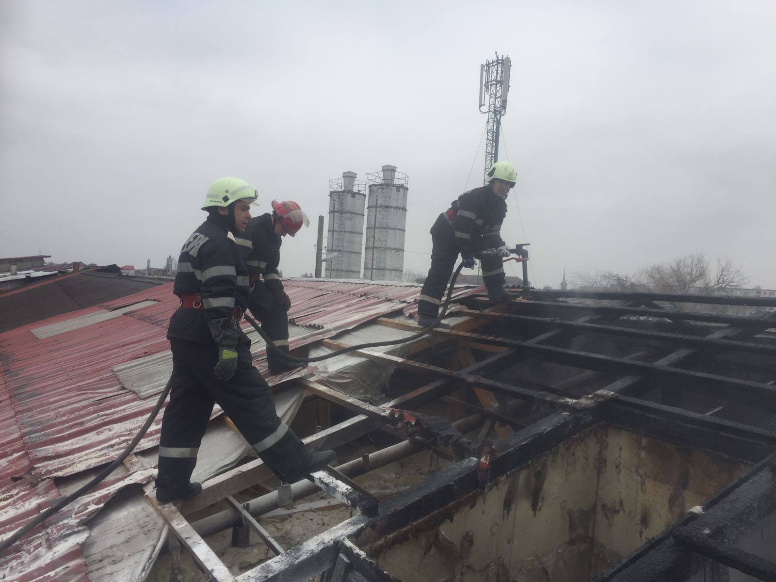 FOTOGALERIE. Incendiu la o fabrică din municipiul Satu Mare. Acoperiș făcut scrum