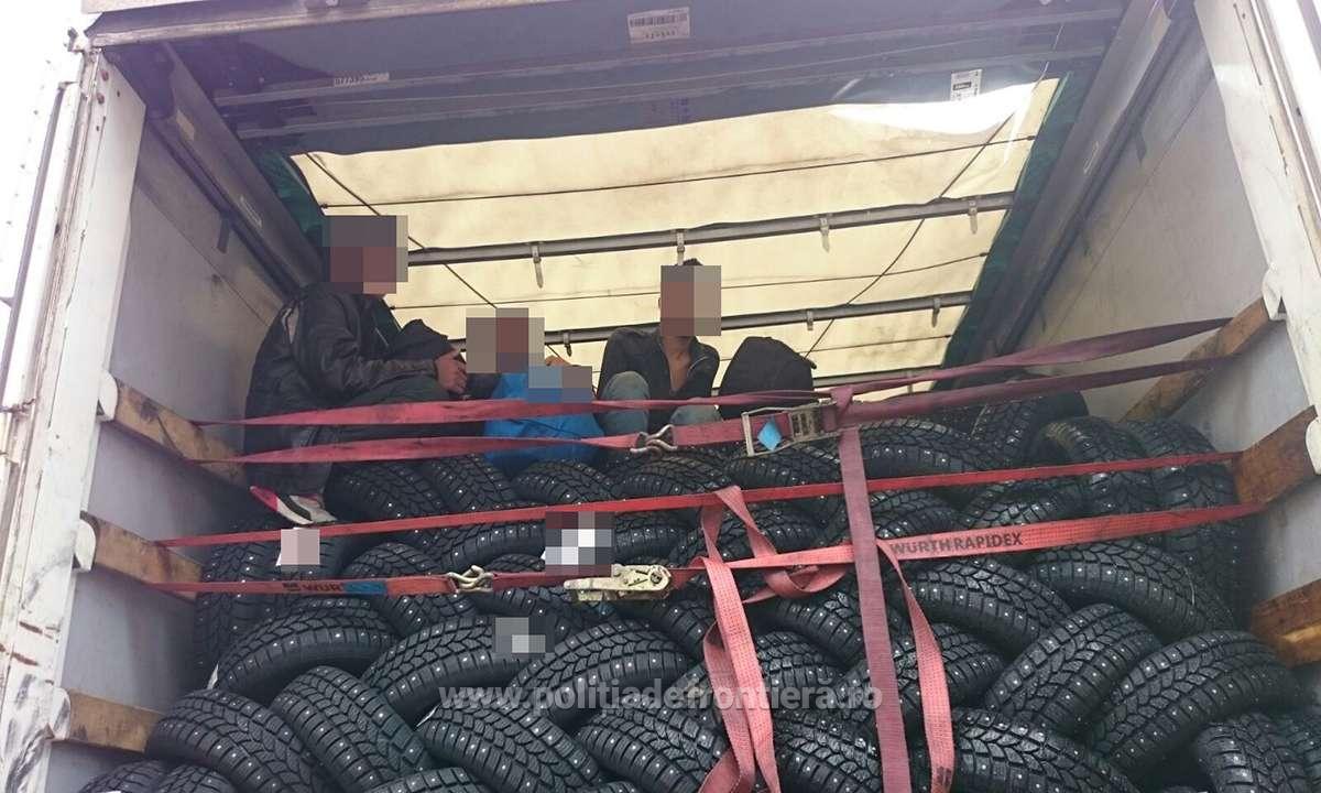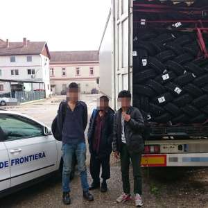 Polițiștii de frontieră sătmăreni împreună cu lucrători ai Secţiei 3 Poliţia Rurală Satu Mare au descoperit, într-un camion încărcat cu pneuri, trei cetățeni afgani, care intenţionau astfel să treacă ilegal frontiera cu scopul de a ajunge într-un stat din Spațiul Schengen.