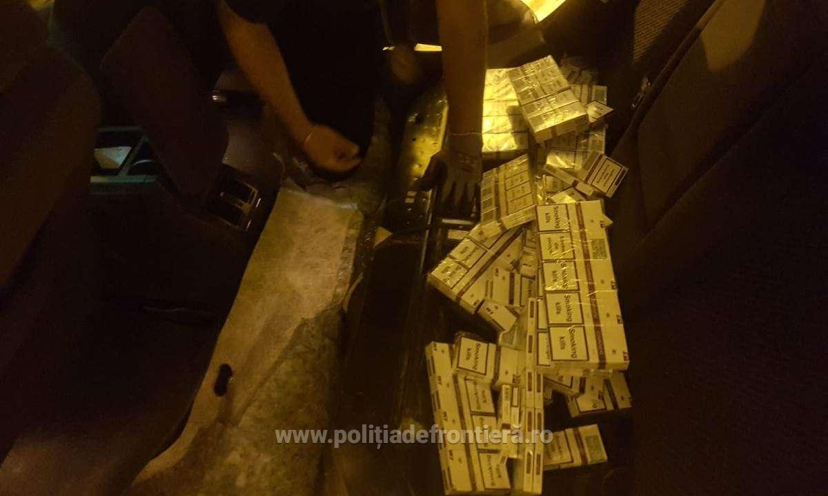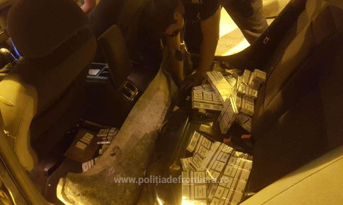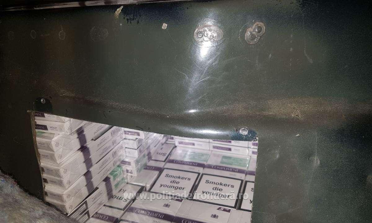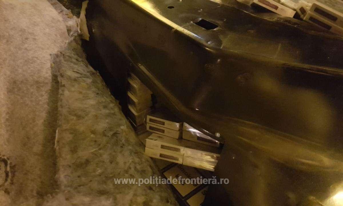Astfel, a fost descoperită ascunsă şi nedeclarată, în vederea sustragerii de la controlul vamal, în mai multe spații special amenajate în bara din spate, bancheta și bordul mașinii, 3.140 pachete cu țigări de proveniență ucraineană.