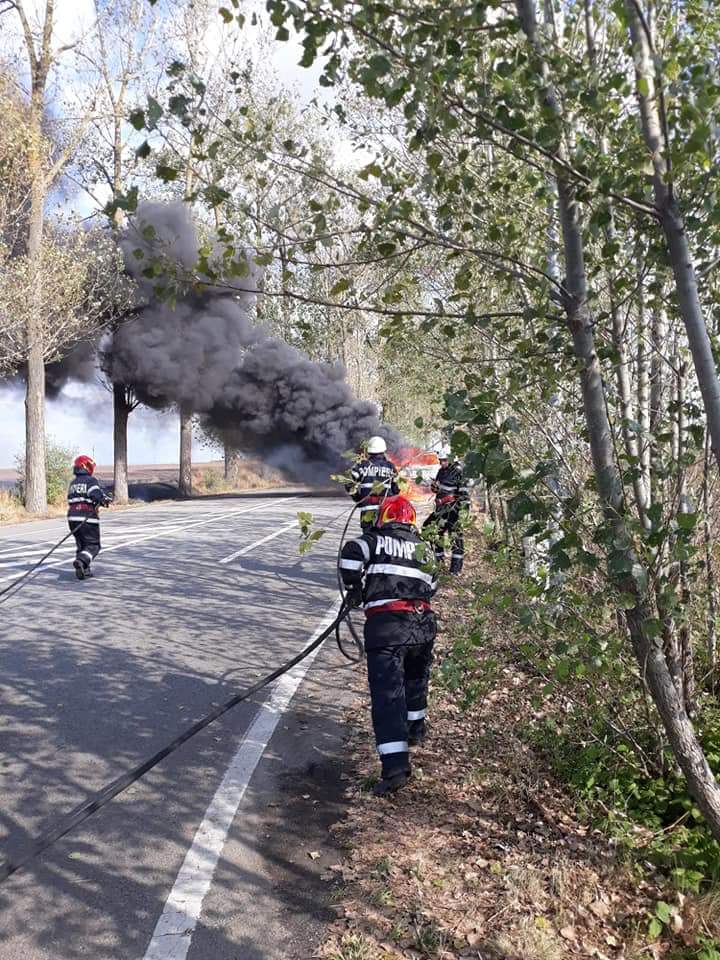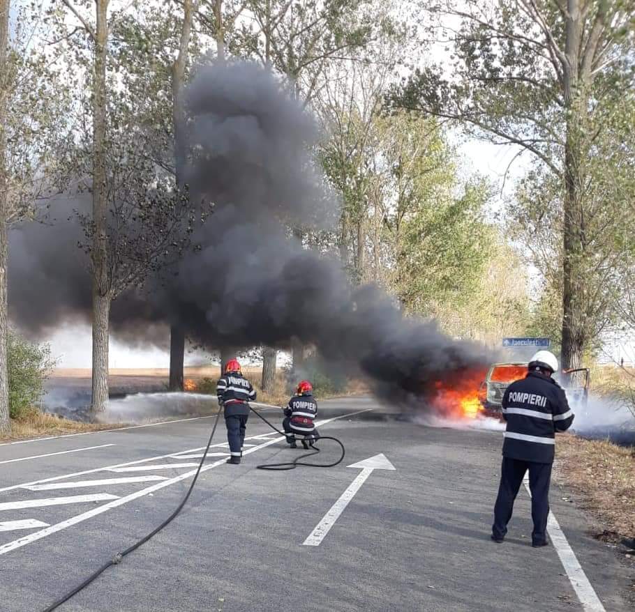 Din fericire, șoferul a reușit să iasă la timp din autovehiculul care a ars în totalitate. Cauza probabilă a producerii incendiului a fost scurtcircuitul electric.