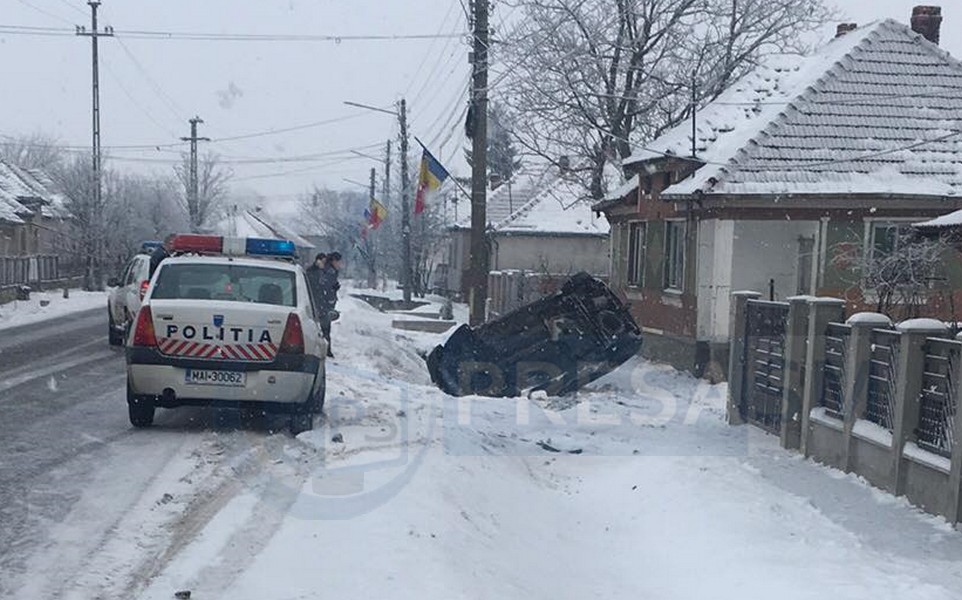 Mașina s-a oprit aproape de zidul unei case. Potrivit informațiilor PresaSM, șoferul, în vârstă de circa 40 de ani, nu a pățit nimic.