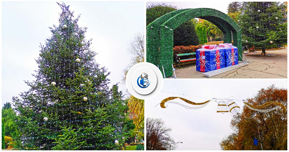 Bradul instalat în parcul central a fost împodobit, iar traversele au apărut pe străzile din Piața Libertății.