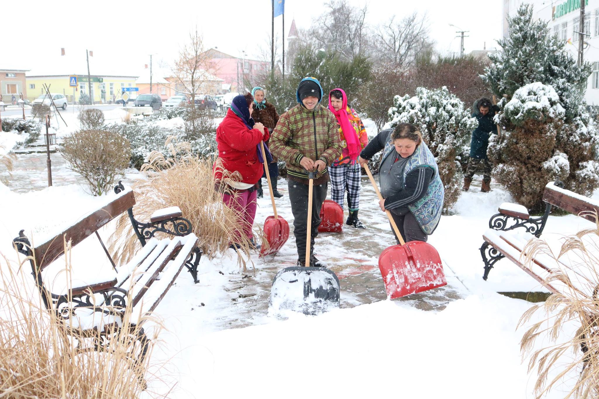 FOTOGALERIE. Orașul în care cetățenii au ieșit să deszăpezească drumurile