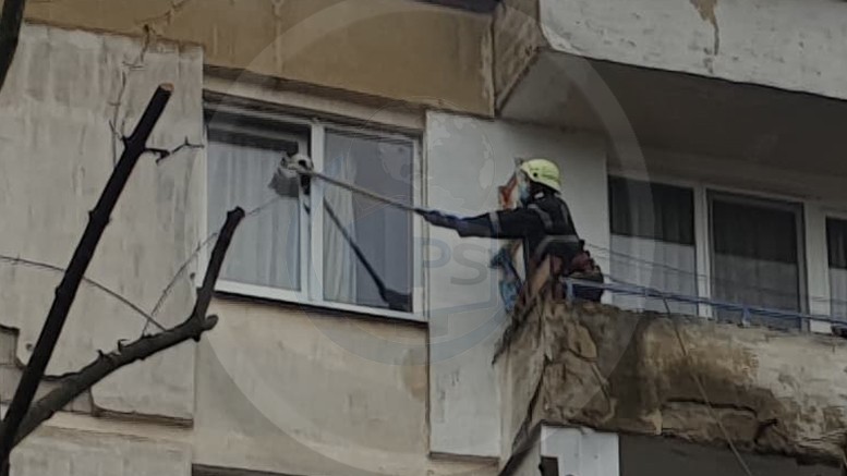 La fața locului a ajuns un echipaj de pompieri cu o autospecială, iar salvatorii au reușit, din vecini, să ajungă în balconul apartamentului în care se afla blocată pisica.