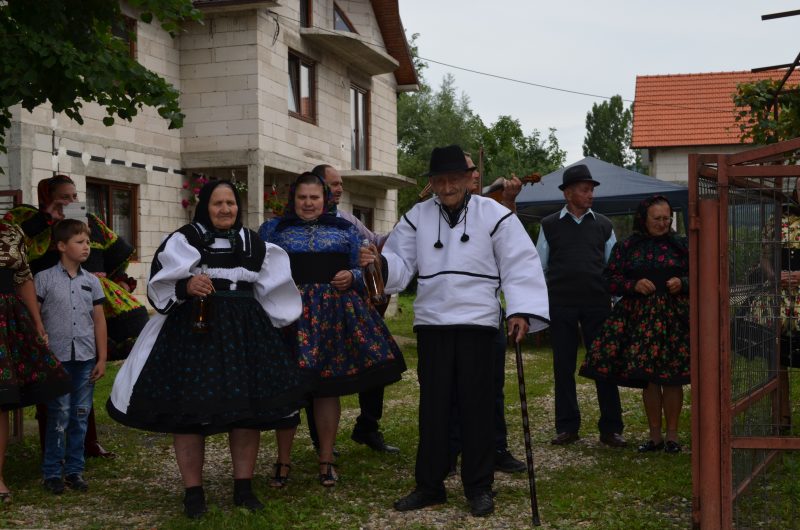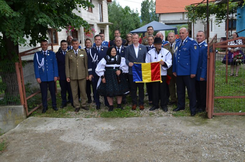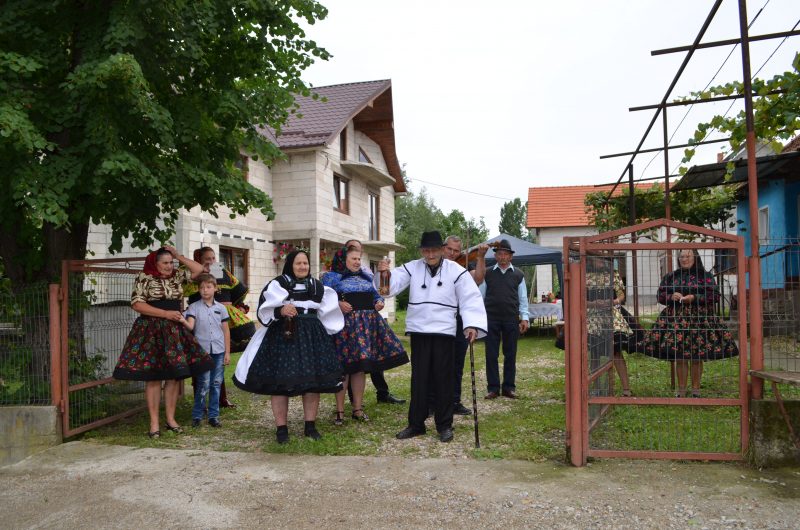Și-a luat straiele oșenești și cu femeia care i-a stat alături toată viața a ieșit în poartă să-și primească oaspeții. Sticla de pălincă din mâna gazdei și ceterașii în drum, împreună cu ceilalți membri ai familiei gătiți de sărbătoare întregesc un peisaj specific locului.