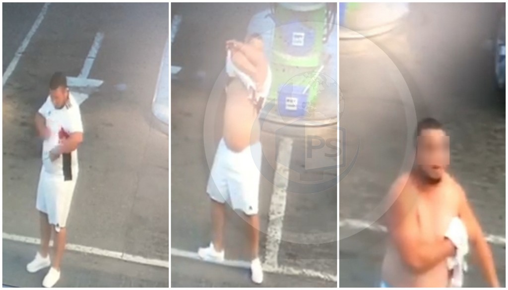 Reporterii PresaSM au intrat în posesia primelor imagini surprinse cu victima înjunghiată într-o benzinărie din municipiul Satu Mare, situată pe Bulevardul Lucian Blaga. Din imagini se vede cum imediat după ce a fost împuns cu un obiect ascuțit, victima își dă tricoul jos pentru a-și verifica rana, după care pune presiune pe ea, pentru a limita hemoragia.