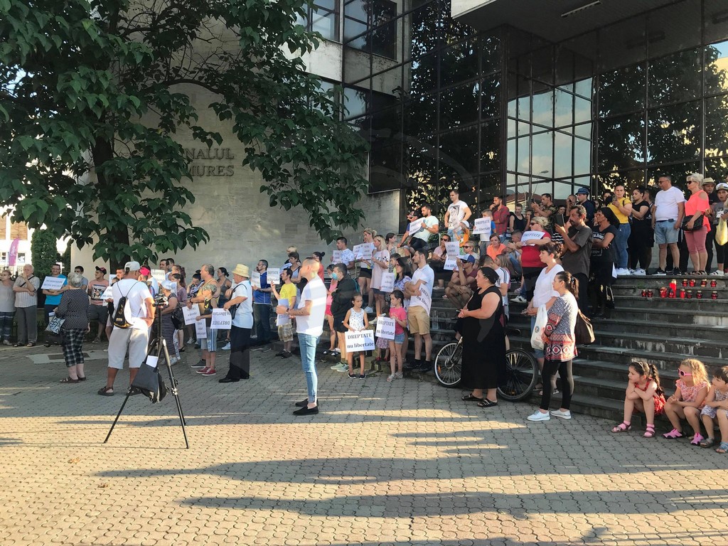 Protest în fața Palatului de Justiție din Baia Mare, după ce judecătorii au dispus punerea în libertate a bărbatului care a lovit doi tineri într-o stație de autobuz. Oamenii au depus flori și lumânări pe treptele clădirii și au cerut magistraților pedepse mai dure pentru șoferii teribiliști. Mobilizarea pentru protest s-a făcut prin intermediul rețelelor de socializare.