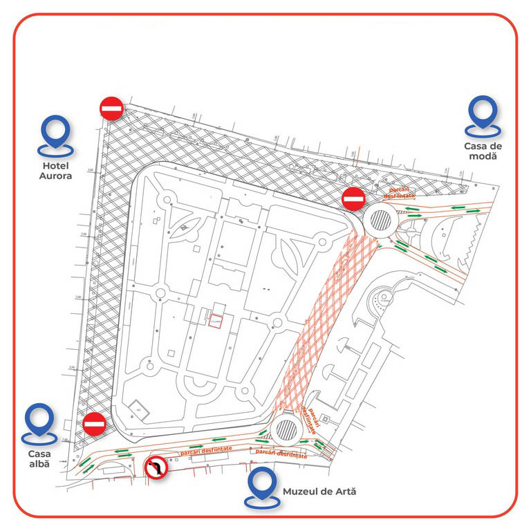 Lucrările continuă și pe tronsoanele deja închise, pe primul tronson închis, cel din fața hotelului Aurora, au fost amenajate viioarele pietonale și piste pentru bicicliști, cele care vor continua roată parcul, inclusiv pe porțiunea care va rămâne deschisă și traficului auto.