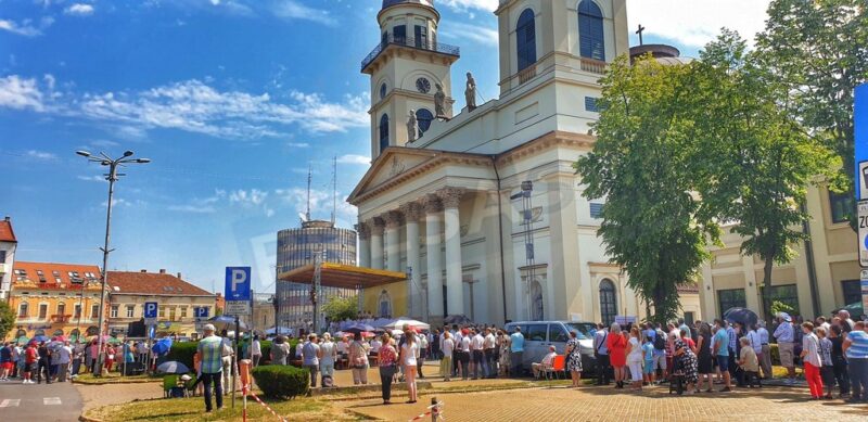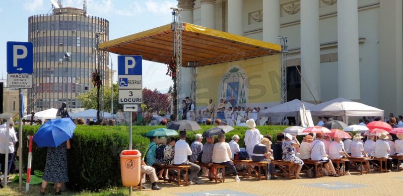 Mii de credincioși romano-catolici au luat parte azi la hramul Diecezei Romano Catolice de Satu Mare, cu ocazia celebrării Preasfintei Inimi a lui Isus. Piața Libertății a fost plină de credincioși veniți din România, dar și din Ungaria și Ucraina.