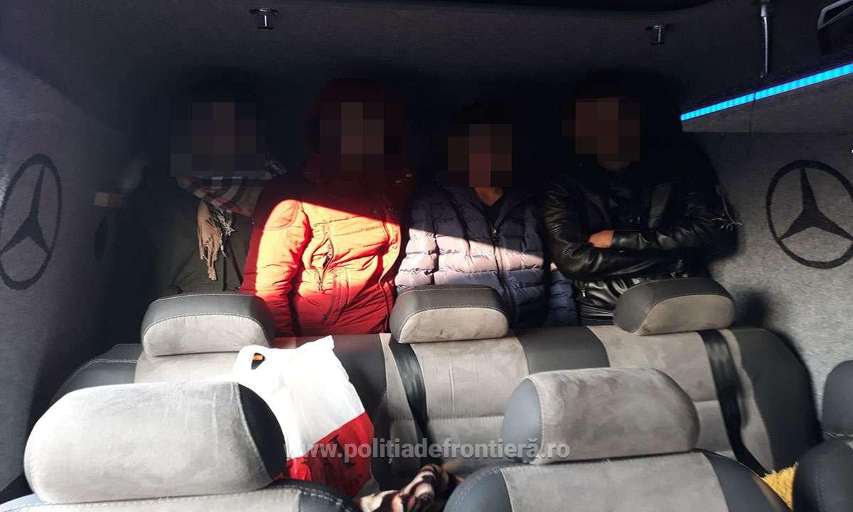 Poliţiştii de frontieră au efectuat un control amănunţit asupra mijlocului de transport, în urma căruia au fost descoperite, ascunse într-un loc special amenajat între bancheta spate şi compartimentul marfă, în spatele unui perete dublu, 4 persoane de sex masculin.