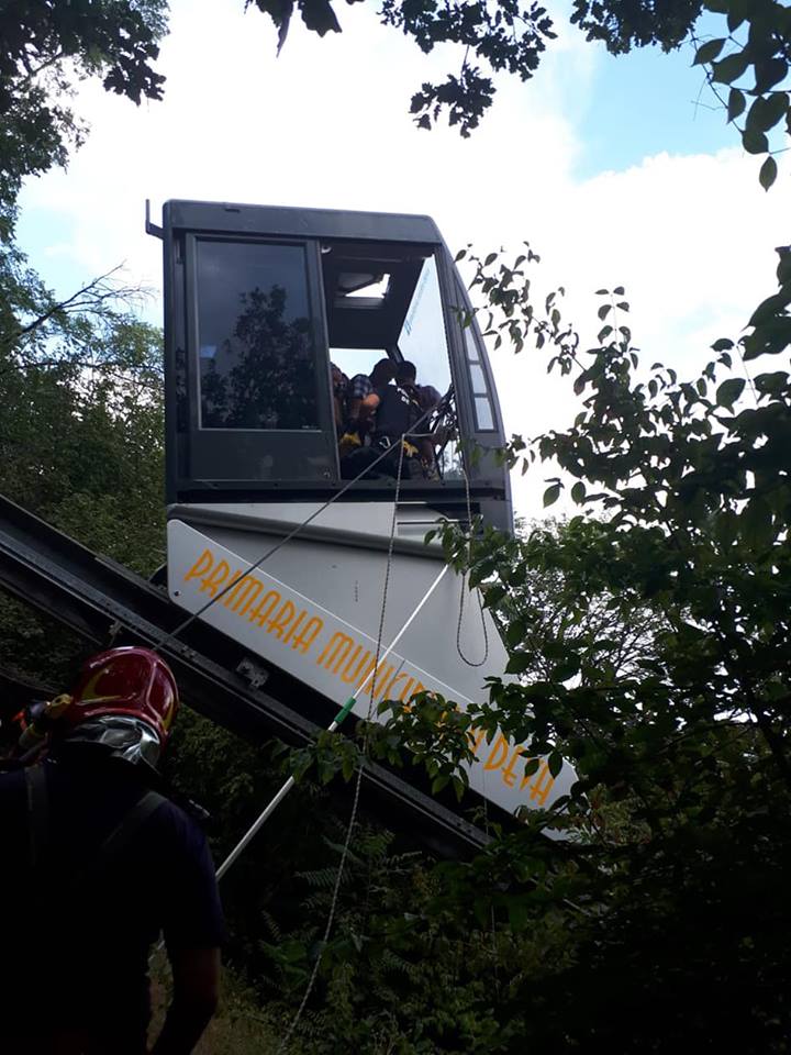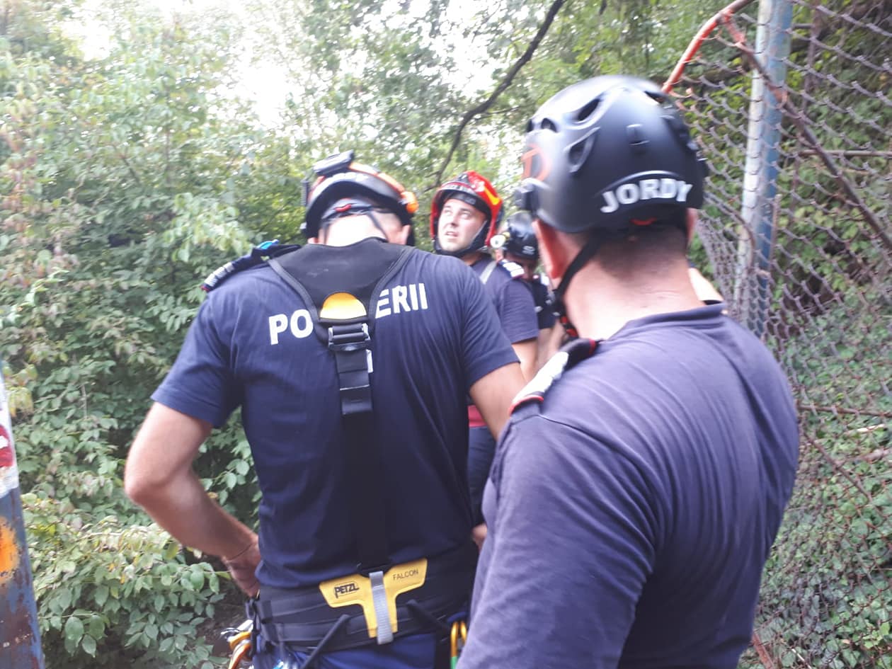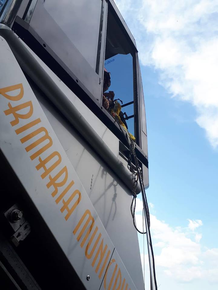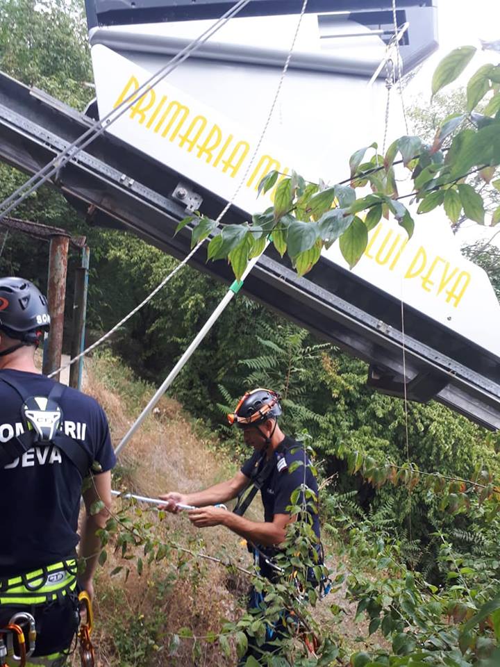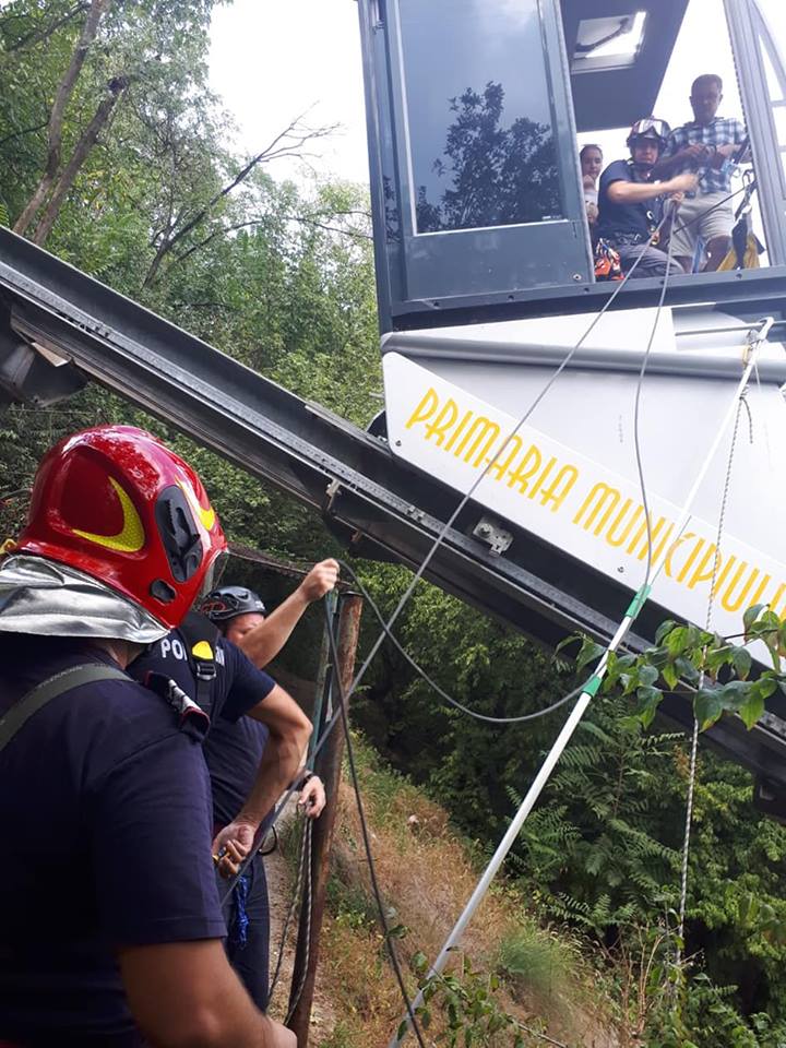 Pompierii alpinişti au realizat un dispozitiv specific de salvare de la înălţime, alcătuit dintr-un braţ si un coş de extractie, cu ajutorul căruia au desfăşurat operaţiunea eficientă de aducere rapidă la sol a oamenilor blocaţi.