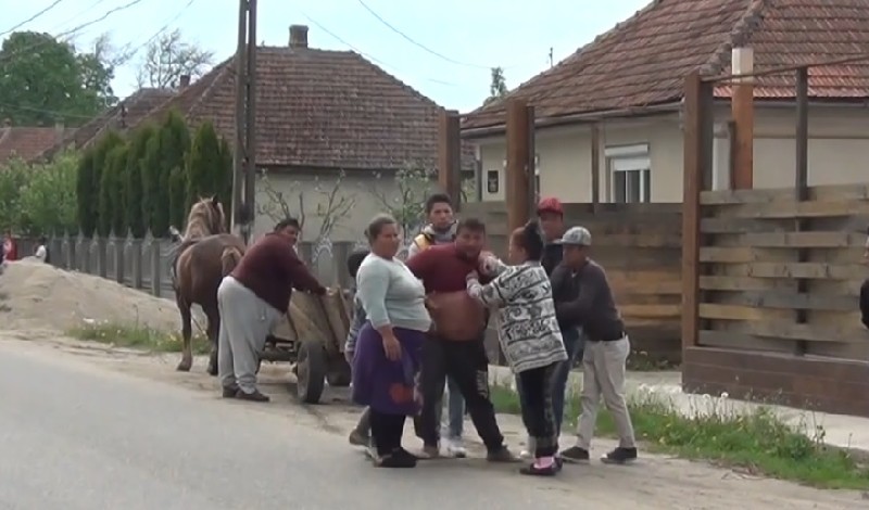 FOTOGALERIE. Scandal monstru în Medieșu Aurit. Zeci de persoane în stradă, sânge și amenințări
