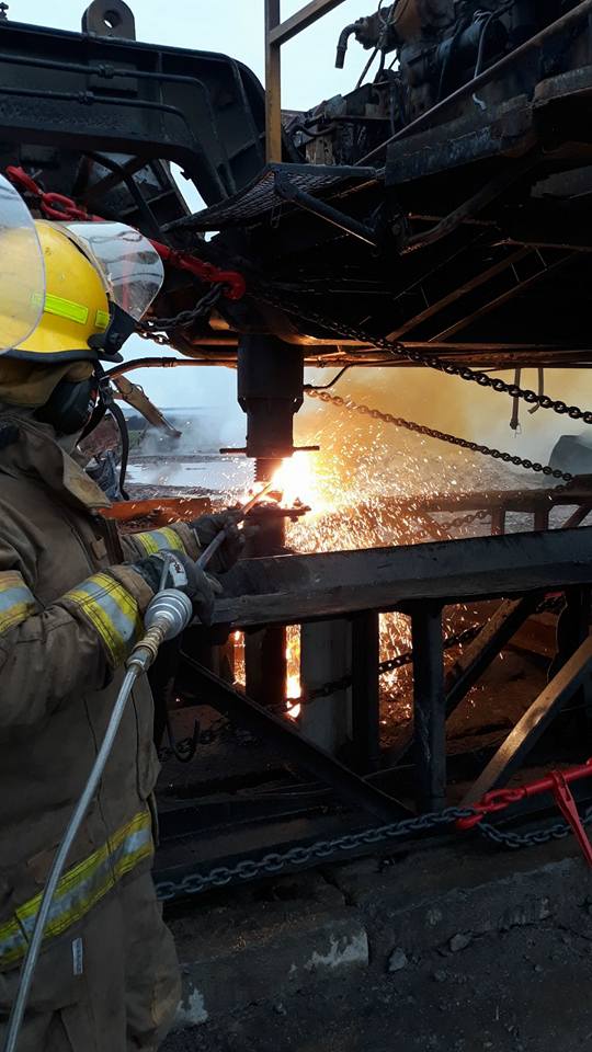 A fost ancorată suprastructura metalică și s-a demarat operațiunea de secționare a acesteia, cu ajutorul unor echipamente speciale, aduse în această dimineață pe amplasament, în vederea extragerii din focar.