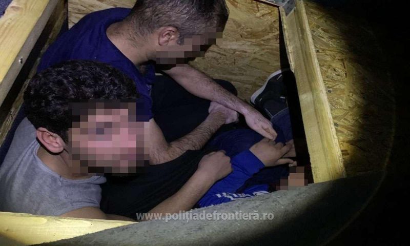 Poliţiştii de frontieră din PTF Petea au depistat un șofer de microbuz care avea ascunși într-un loc special amenajat în compartimentul pentru transport bagaje, șapte cetățeni din Siria și Bangladesh, cu intenția de a-i trece ilegal graniţa în Ungaria.