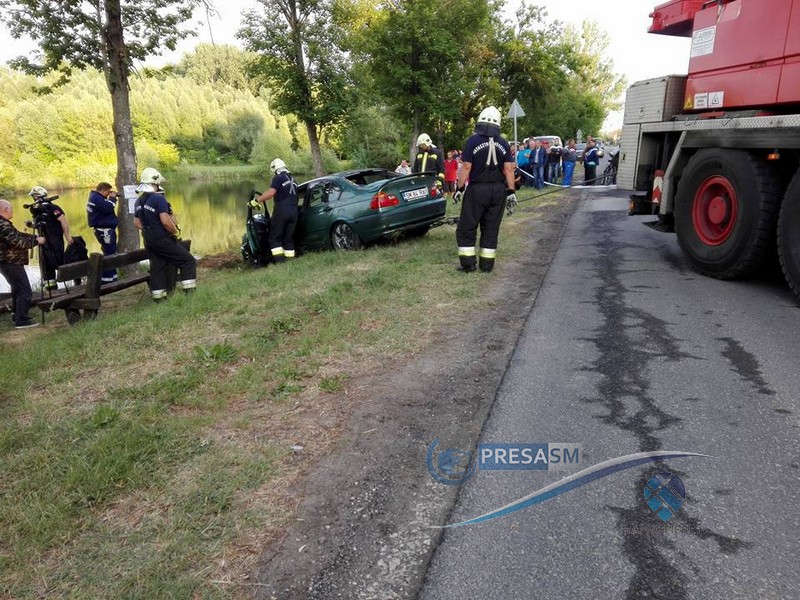 FOTOGALERIE. Un sătmărean a plonjat cu mașina într-un lac