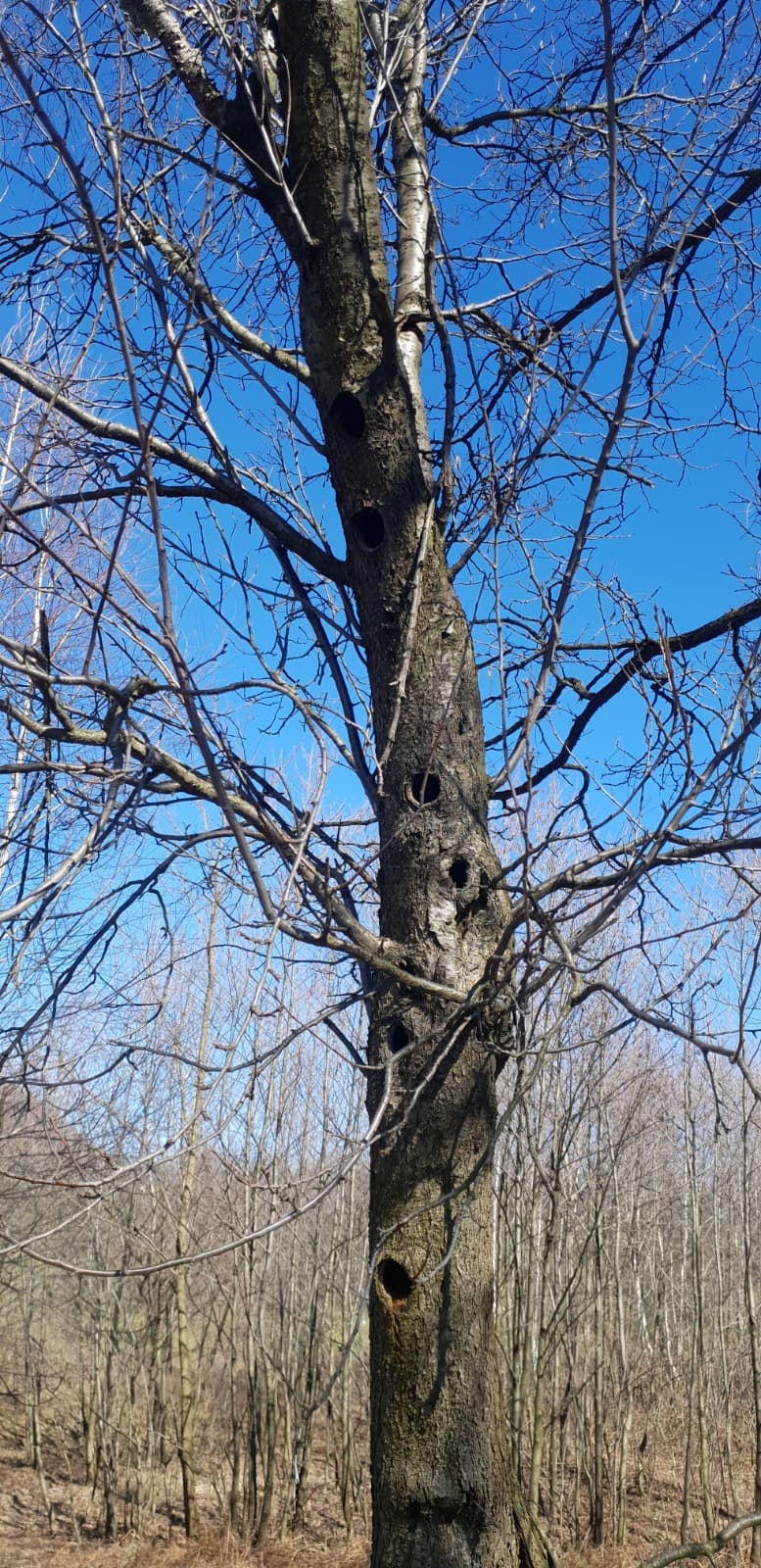 Mergem mai departe, lăsând în urmă acest loc plin de nostalgie și drumul nostru iese într-un tăpșan, un loc deschis care ne oferă primul punct de belvedere, dar și o altă surpriză plăcută: Copacul Fluier, meșteșugit cu mult talent de ciocănitoarele buclucașe.