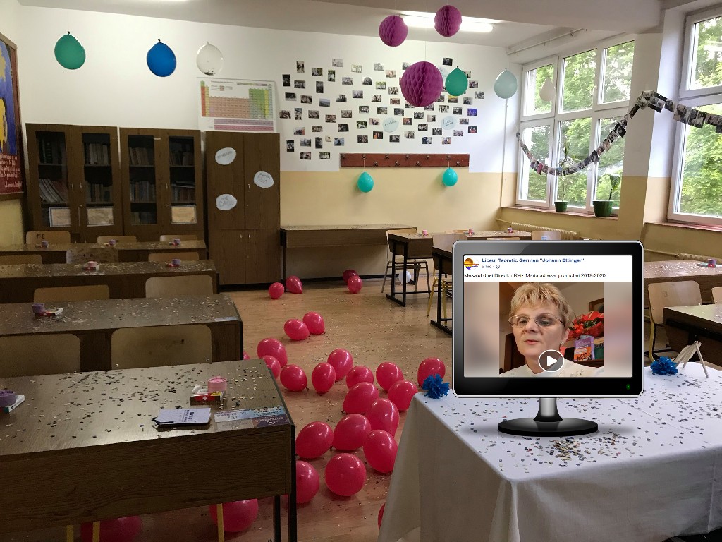 Așa s-a întâmplat și la Liceul Teoretic German "Johann Ettinger", unde și directorul instituției și-a oferit ultimul discurs în fața elevilor tot prin intermediul rețelelor de socializare. Clasele terminale și-au postat albumele și moto-urile alese, și-au transmis felicitări și au primit încurajări.
