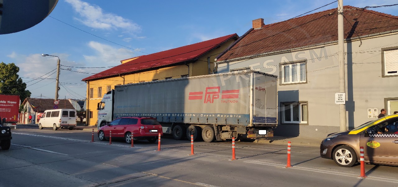 Accident rutier în noul sens giratoriu de pe Drumul Botizului. Șoferul unui autotren, înmatriculat în Ucraina, care se afla pe a doua bandă de circulație, nu a observat un autoturism marca Volkswagen, înmatriculat în județul Satu Mare, condus regulamentar de către o șoferiță pe prima bandă de mers.