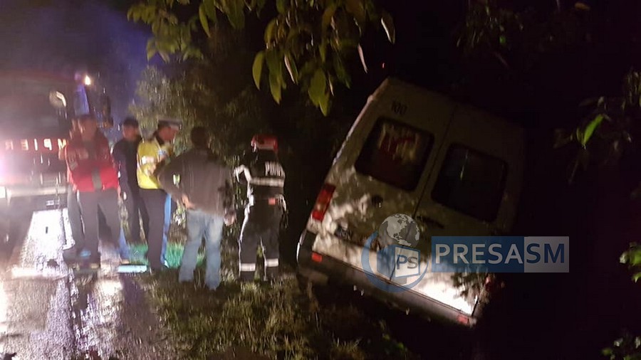Autoturismul Dacia a fost proiectat într-un microbuz, condus de un bărbat, în vârstă de 66 de ani. Autoturismul Dacia a ajuns în șanț, răsturnat, în timp ce microbuzul a ajuns în șanțul din dreapta direcției de mers.