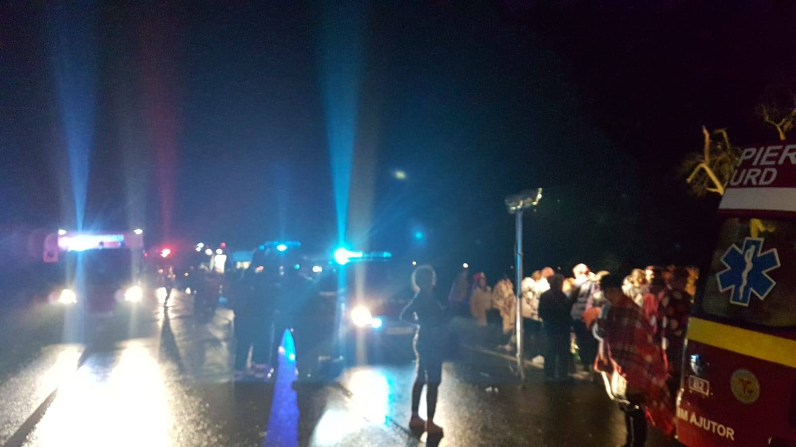 Un autocar cu 72 de persoane s-a răsturnat, în noaptea de duminică spre luni, în localitatea Tătărăşti, în judeţul Hunedoara, autorităţile declanşând plan roşu de intervenţie.