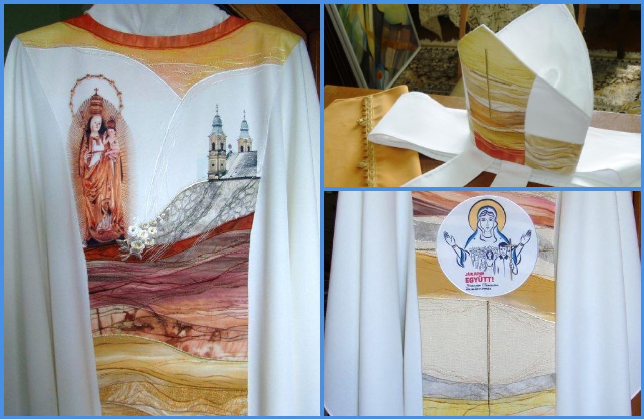 Ea a explicat că există câteva cerinţe liturgice clare, cum ar fi faptul că haina dedicată acestor ocazii are culoarea albă, dar că în rest are o mare libertate de creaţie. Ea a ales imaginea statuii Fecioarei Maria de la Şumuleu, pe care s-a gândit să o „aşeze” pe partea dreaptă a cazulei.