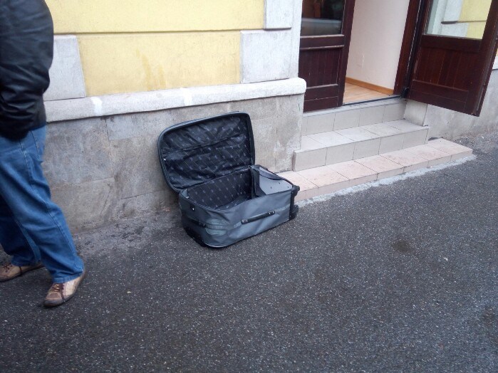 Din câte se pare, individul era și proprietarul geamantanului și a crezut de cuviință să fie cât mai convingător, așa că a dat și cu geamantanul de pământ.