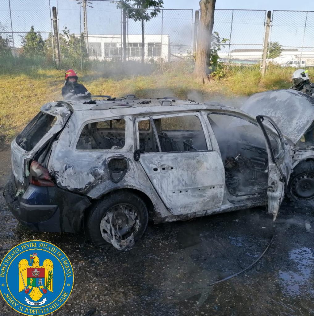 Un autoturism a fost distrus în totalitate în orașul Negrești-Oaș din județul Satu Mare. Ajunși la fața locului, pompierii nu au mai putut salva mare lucru din mașină.