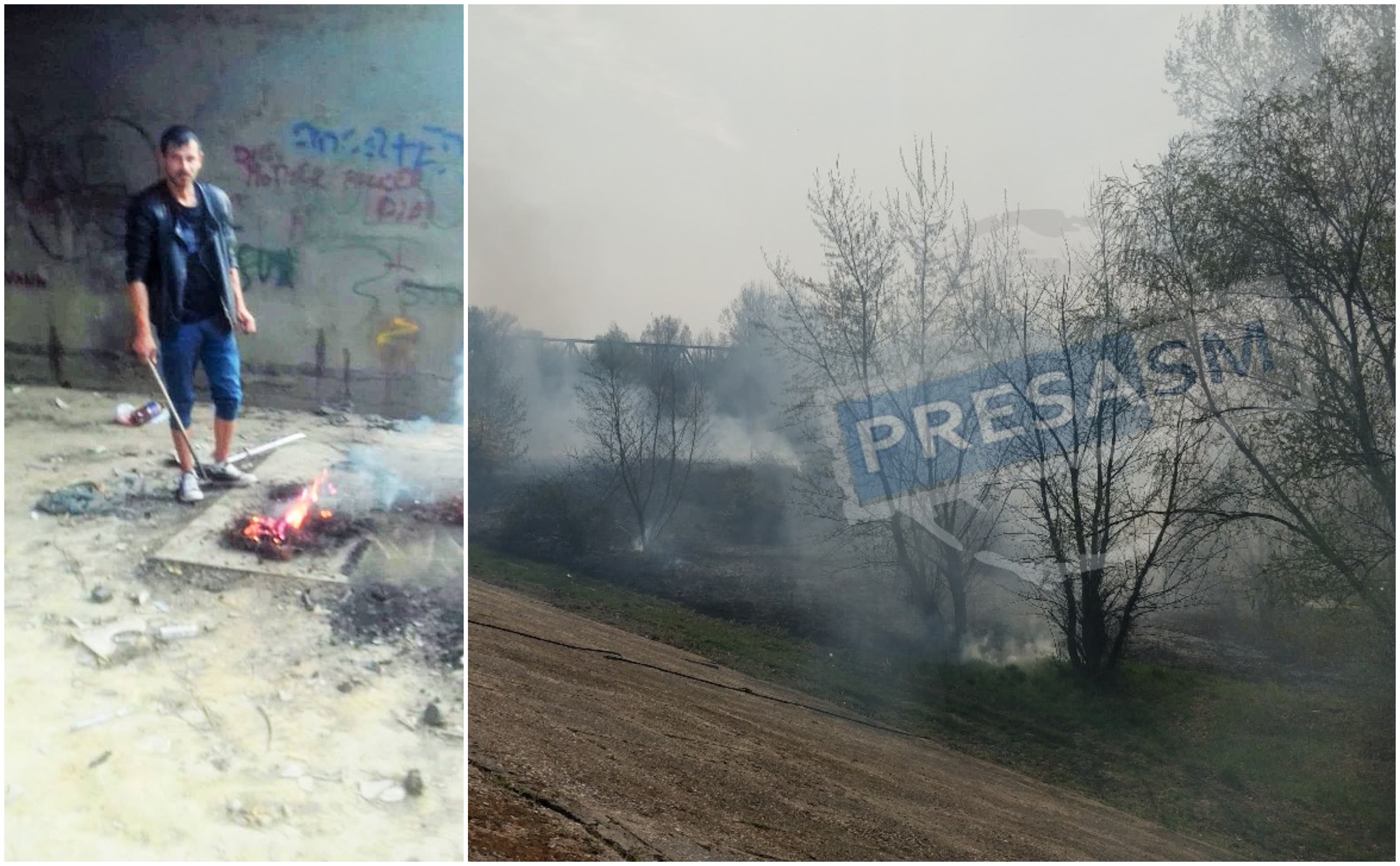 FOTO/VIDEO. Bărbat prins în timp ce făcea foc pe malul Someșului. Vinovat de ultimele incendii?!