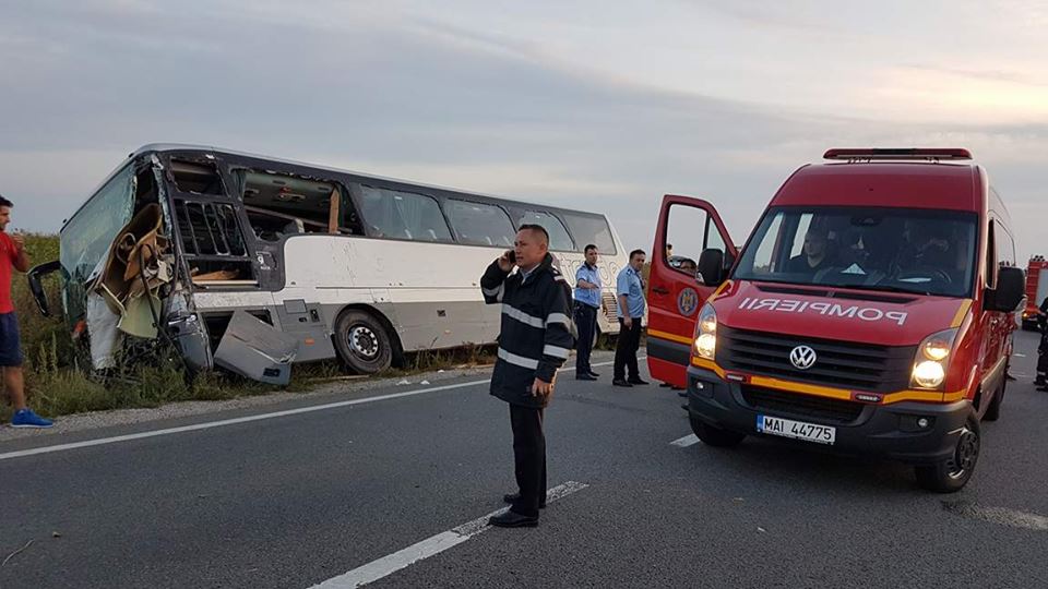 Reamintim că în această seară, în jurul orei 18.00, un autocar din Serbia a acroșat o autoutilitară. În urma impactului, autocarul a părăsit partea carosabilă și s-a răsturnat în șanț. În momentul producerii accidentului, în autocar se aflau 36 de persoane.