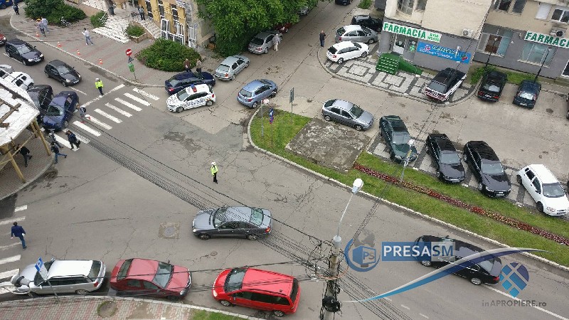FOTO&VIDEO. Blocaje totale în centrul Sătmarului. Polițiștii au ieșit în intersecții