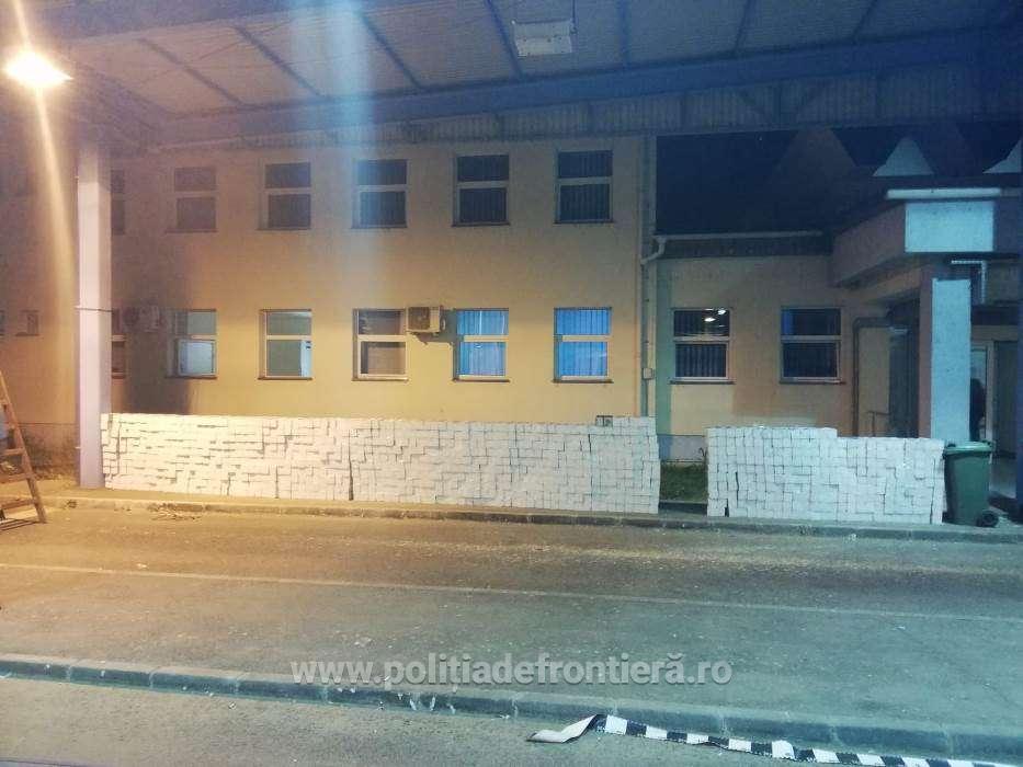 Polițiștii de frontieră şi lucrătorii vamali din cadrul Punctului de Trecere a Frontierei Halmeu – judeţul Satu-Mare au descoperit și confiscat 40.000 de pachete cu țigări, ascunse într-un spațiu special amenajat în plafonul unei semiremorci.