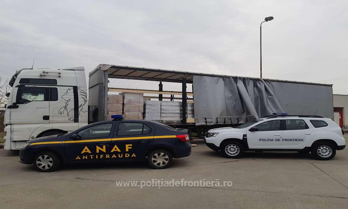 "Ieri, 13 martie a.c., în jurul orei 10.30, s-a prezentat în Punctul de Trecere a Frontierei Petea, județul Satu Mare, pe sensul de intrare în țară, D.H., în vârstă de 27 de ani, domiciliat pe raza județului Suceava, conducând o autoutilitară marca MAN, înmatriculată în România. Din primele verificări, s-a constatat faptul că şoferul transporta, conform documentelor prezentate pentru control, detergent și balsam pentru rufe. Acționând în baza analizei de risc, polițiștii de frontieră împreună cu lucrători din cadrul Direcţiei Regionale Antifraudă Oradea au efectuat un control amănunțit asupra autovehiculului. Astfel, printre marfa transportată, echipa mixtă de control a descoperit cinci paleți pe care se aflau mai multe cutii care conțineau tutun vrac pentru care persoana în cauză nu a putut prezenta niciun document de proveniență," se arată într-un comunicat al polițiștilor de frontieră.