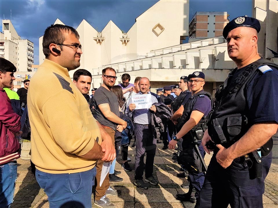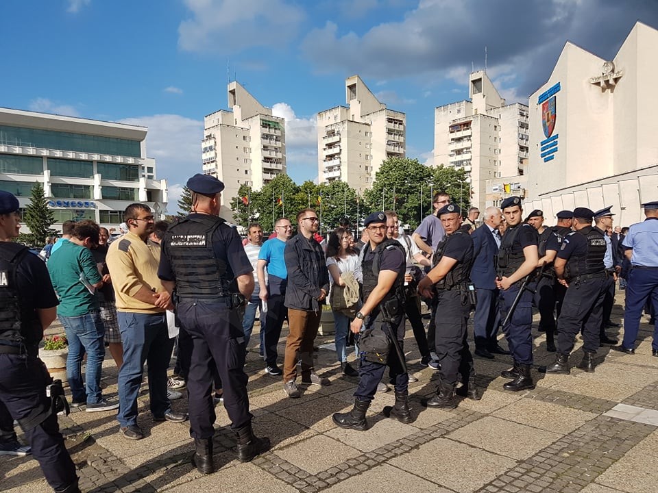 Imaginile de la Satu Mare sunt similare cu cele din alte județe ale Transilvaniei. Partidul aflat la putere de o parte, protestatarii de cealaltă, iar între ei cordonul de jandarmi.