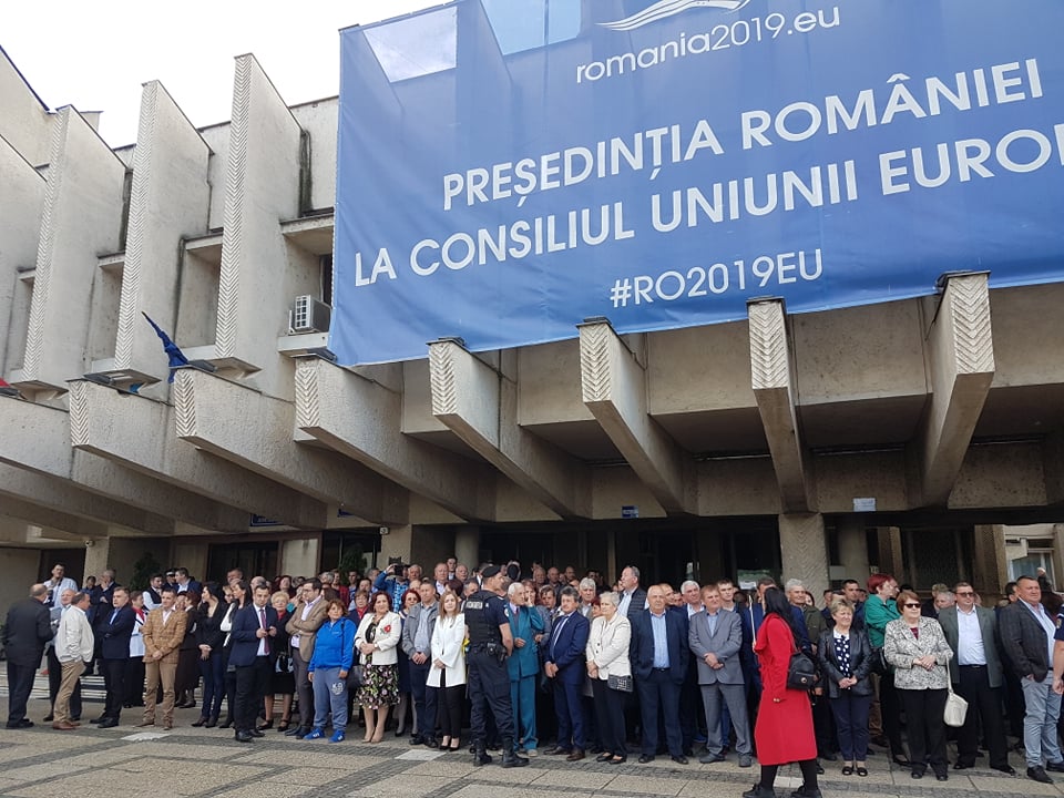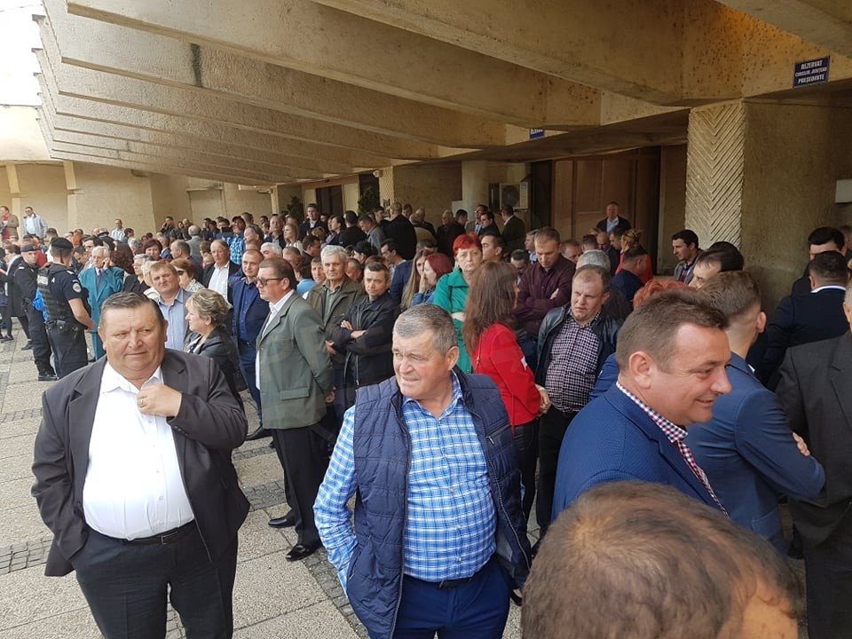 Scandările au început încă de când s-au adunat în fața Palatului Administrativ primii membri ai PSD, primari și șefi ai instituțiilor publice.