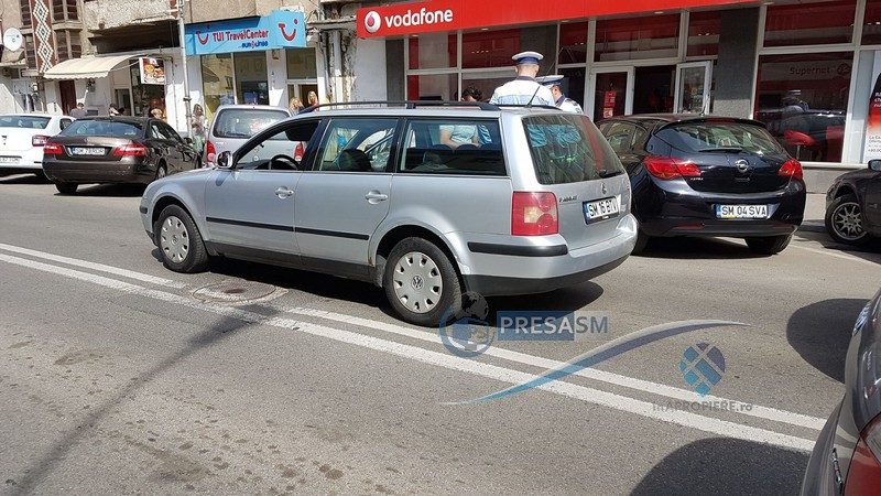 Femeie lovită de o mașină în centrul Sătmarului. Șoferul susține că aceasta i-ar fi cerut bani pentru a nu raporta accidentul.