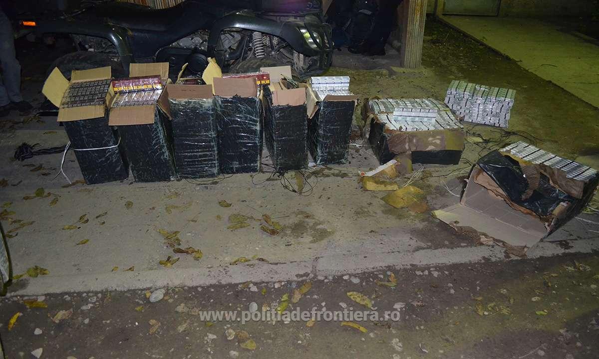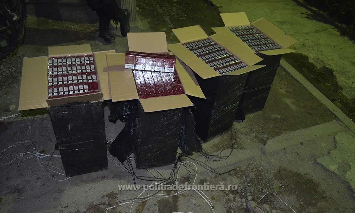 Concret, în data de 10 octombrie 2018, poliţiştii de frontieră din cadrul Sectorului Poliției de Frontieră Valea Vișeului au declanșat o acțiune pe linia combaterii contrabandei cu țigări în zona de responsabilitate. Astfel, în jurul orei 19.00, un echipaj a observat mai multe persoane care transportau de la malul râului Tisa către interiorul țării colete cu țigări. Imediat, polițiștii de frontieră au acționat pentru reținerea bărbaților efectuând somațiile legale prin voce, moment în care aceștia au abandonat coletele și s-au îndreptat spre teritoriul statului vecin. [video_youtube id=""] În urma acțiunii, poliţiştii de frontieră au reținut o persoană, cetățean ucrainean, în vârstă de 15 ani, iar celelalte persoane s-au retras pe teritoriul ucrainean. Au fost informate autoritățile de frontieră ale statului vecin despre eveniment. La fața locului s-a deplasat o echipă de intervenție care a procedat la supravegherea și cercetarea zonei, ocazie cu care au fost descoperite opt colete cu țigări. Acestea au fost duse la sediul sectorului, unde în urma inventarierii a rezultat cantitatea de 4.999 pachete cu țigări de proveniență ucraineană, a căror valoare se ridică la suma de 59.000 lei. Întreaga cantitate de țigări a fost ridicată în vederea confiscării, iar în cauză se efectuează cercetări sub aspectul săvârșirii infracțiunilor de contrabandă și trecere ilegală a frontierei de stat. În cadrul aceleiași acțiuni, un alt echipaj din cadrul Sectorului Poliției de Frontieră Valea Vișeului a depistat în apropierea frontierei de stat două persoane care transportau baxuri cu țigări. Polițiștii de frontieră au efectuat somațiile legale pentru reținerea acestora, însă persoanele în cauză nu s-au supus încercând să fugă, drept urmare oamenii legii au executat două focuri de avertisment în plan vertical. Nici de această dată bărbații nu s-au supus somaţiilor, abandonând coletele și retrăgându-se pe teritoriul ucrainean. Imediat au fost informate autoritățile ucrainene concomitent cu dispunerea unor măsuri de supraveghere și cercetare a zonei. Astfel, au fost descoperite patru colete care conțineau cantitatea de 2.000 pachete cu țigări de proveniență ucraineană, în valoare de 23.300 lei. În cauză se efectuează verificări în vederea identificării persoanelor implicate și a documentării întregii activități infracționale.
