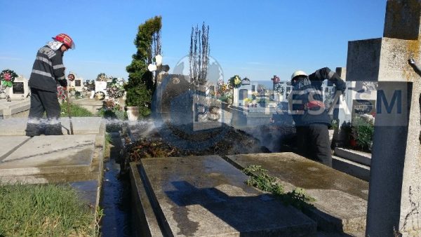 Mai multe locuri de veci din cimitirul de pe strada Amațiului din municipiul Satu Mare au luat astăzi foc. Totul s-a întâmplat în jurul orei 17.00, atunci când vegetația uscată de pe mai multe morminte s-a aprins.